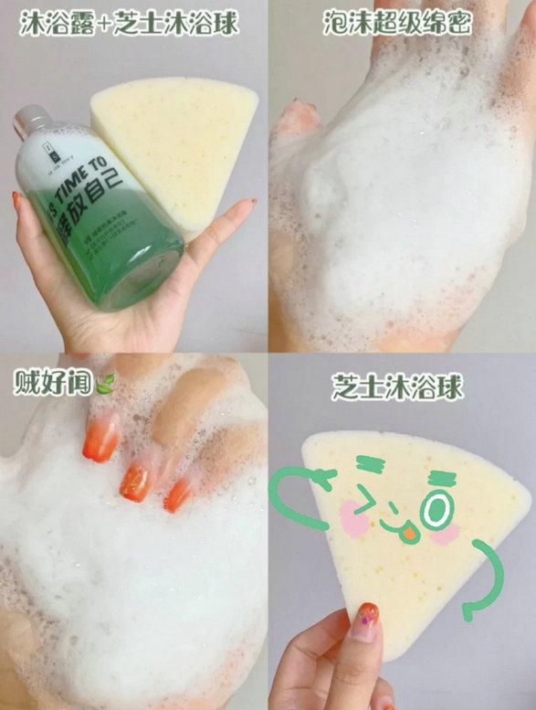 芝士鼎沐浴球炒鸡可爱,轻轻一搓就搓出来泡沫辣鹅且我跟你说,介个沐浴露 是可以去痘痘的哦!
