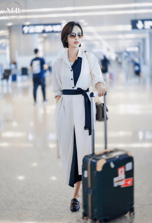 著名演员佟丽娅穿着Sam Edelman的乐福鞋现身机场